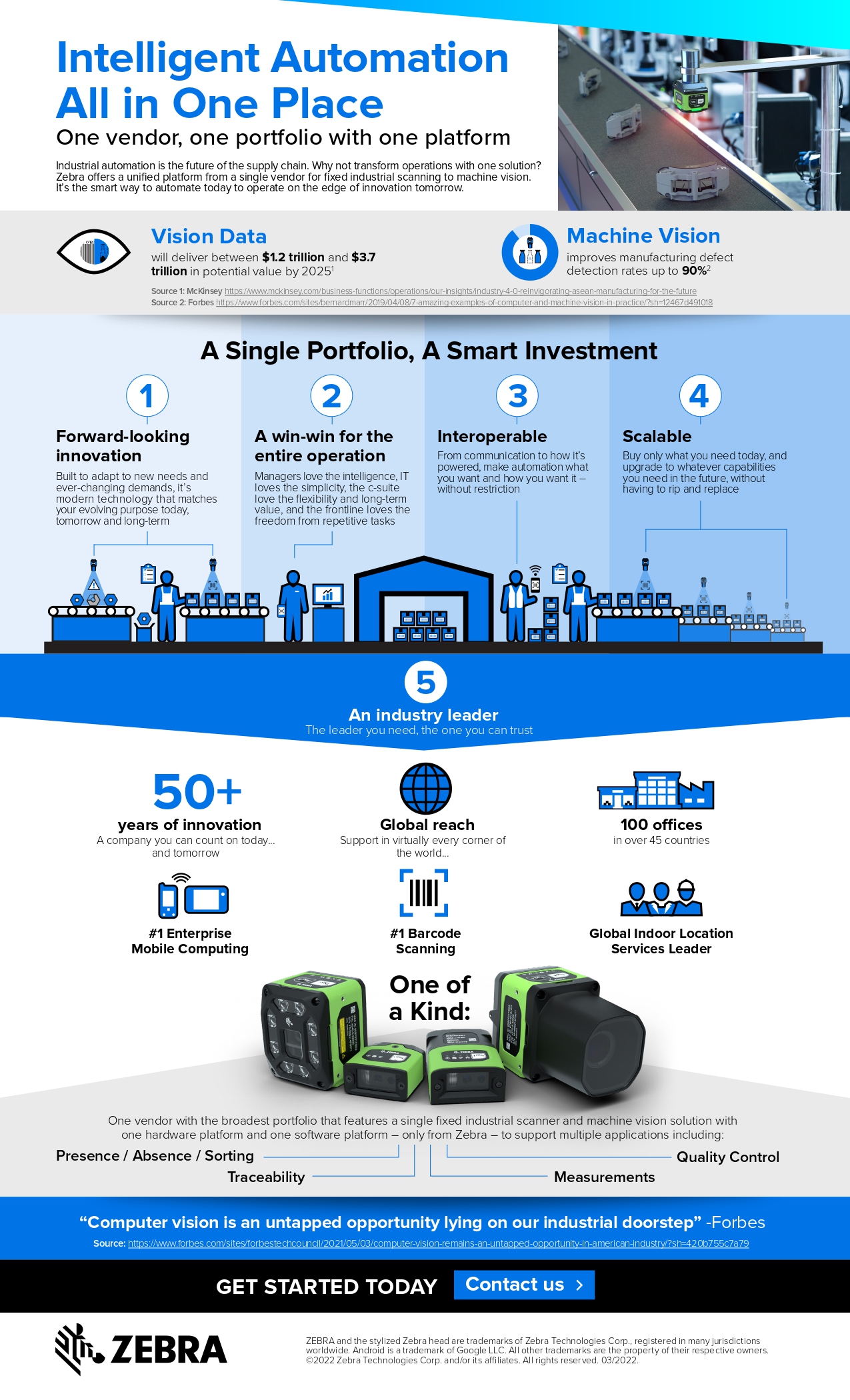 This incredibly flexible portfolio grows with your business. Add the features that you need at any time with a simple software license — no need to buy new devices to get new functionality. Support new symbologies. Increase scanning speeds. Add the power of machine vision to your Fixed Industrial Scanners. And add advanced capabilities to Machine Vision Smart Cameras.